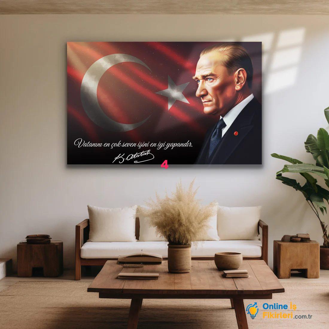 Üçlü cam tablo setleri, üç parçadan oluşarak görsel bir bütünlük sağlar. Duvarda yer alan bu tablolar, odanın atmosferini anında değiştirir. Düşünün ki, bir duvarı sade ve boş bırakmak yerine, Atatürk cam tablo gibi anlamlı bir eserle dolduruyorsunuz. Bu, sadece estetik değil, aynı zamanda kültürel bir ifade biçimi de sunar. Mekânınıza gelen misafirleriniz bu tablo setleri sayesinde hem göz zevkine hitap eden hem de anlam derinliği olan bir atmosferle karşılaşacaklar.